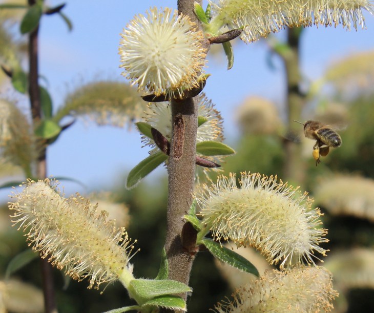 Les saules et osiers sont pourvoyeurs de pollen et nectar très tôt en saison.